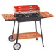 Maniglia laterale, ripiano laterale in legno e ripiano inferiore porta attrezzi in metallo.